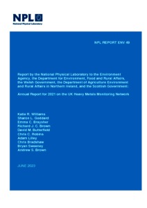 Williams, K R; Goddard, S L; Braysher, E C; Brown, R J C; Butterfield, D M; Robins, C; Lilley, A; Bradshaw, C; Sweeney, B; Brown, A S (2023) Annual report for 2021 on the UK Heavy Metals Monitoring Network. NPL Report. ENV 49