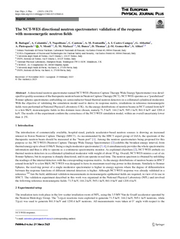 Bedogni, R; Calamida, A; Napolitano, T; Cantone, C; Fontanilla, A M; Castro Campoy, A I; Abbatini, G; Pietropaolo, A; Monti, V; Mafucci, E M; Bunce, M; Thomas, D; Gomez-Ros, J M; Altieri, S (2023) The NCT-WES directional neutron spectrometer: validation of the response with monoenergetic neutron fields. The European Physical Journal Plus, 138. 270