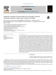 Kerkela, L; Nery, F; Callaghan, R; Zhou, F; Gyori, N G; Szczepankiewicz, F; Palombo, M; Parker, G J M; Zhang, H; Hall, M G; Clark, C A (2021) Comparative analysis of signal models for microscopic fractional anisotropy estimation using q-space trajectory encoding. NeuroImage, 242. 118445