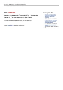 Stanley, M; Gui, Y; Unnikrishnan, D; Hall, S R G; Fatadin, I (2022) Recent Progress in Quantum Key Distribution Network Deployments and Standards. Journal of Physics: Conference Series, 2416. 012001