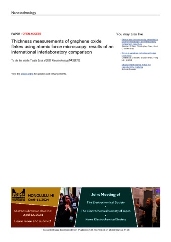 Bu, T; Gao, H; Yao, Y; Wang, J; Pollard, A J; Legge, E J; Clifford, C A; Delvallee, A; Ducourtieux, S; Lawn, M A; Babic, B; Coleman, V A; Jamting, A; Zou, S; Chen, M; Jakubek, Z J; Iacob, E; Chanthawong, N; Mongkolsuttirat, K; Zeng, G; Almeida, C M; He, B-C; Hyde, L; Ren, L (2023) Thickness measurements of graphene oxide flakes using atomic force microscopy: Results of an international interlaboratory comparison. Nanotechnology, 34 (22). 225702