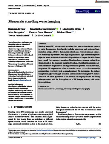 Foylan, S; Schniete, J K; Kolln, L S; Dempster, J; Hansen, C G; Shaw, M; Bushell, T J; McConnell, G (2024) Mesoscale standing wave imaging. Journal of Microscopy, 295 (1). pp. 33-41. (In Press)