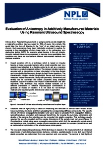 Resonant measurement, or using sound to provide insight into a material’s condition, has been used for 100s of years. Very simply, this would take the form of listening to the “ring” of an object when struck sharply. Such approaches have been historically employed in casting, for example in the manufacture of clock tower bells, or for rudimentary non-destructive testing (NDT), for example wheel tapping in the rail industry. Acoustic methods have since progressed to become more quantitative than qualitative and there are now several different instrumented methods and analyses available. This measurement note introduces resonant methods and describes the application of Resonant Ultrasound Spectroscopy (RUS) to the quantification of anisotropy in additively manufactured materials.